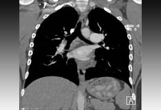 Pulmonary veno-occlusive disease in a 43-year-old man. An axial computed tomography (CT) scan (lung window level) shows multiple septal lines (arrowhead) and a dilated central pulmonary artery (arrow). Image courtesy of Thoracic Imaging Section, Department of Radiologic Pathology, Armed Forces Institute of Pathology.