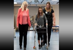 With an injury level of L2, active hip flexion and reciprocal gait become possible. With an injury level of L3, ambulation with ankle-foot orthoses (AFOs), rather than KAFOs, is possible; however, the hips remain unstable due to the lack of active hip abduction and extension. Therefore, bilateral canes or crutches or a walker must be used. This gait may be sufficient for community ambulation but still is laborious, and some patients may prefer a wheelchair.